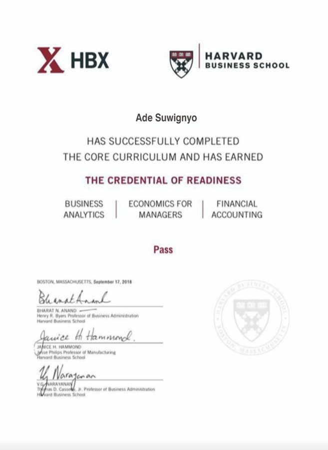 Ade Suwignyo, S.TP, B.Sc Ade Suwignyo, S.TP, B.ScDirektur Latar Belakang Pendidikan SMA Negeri 2 Surakarta Sekolah Tinggi Pariwisata AMPTA Yogyakarta — Diploma III Harvard Business School University, USA Pengalaman Kerja 2001 – 2003Aurora Gold Australian Company (Kalimantan) — HRD 2003 – 2004Sumitomo Corporation Japan — Chef Problem Account 2004 – 2011Carnival Cruise Line – USA — Assistant Laundry Manager & Pool & Deck Supervisor 2012 – 2015Serenity Cruise Specialize – Solo — CEO 2016 – SekarangPondok Pesantren Darul Falah, Klaten — Pengasuh 2022 – SekarangBIP International Academy, Klaten — Direktur & Dosen 2023 – SekarangPT Barokah Indonesia Persada, Klaten — Direktur